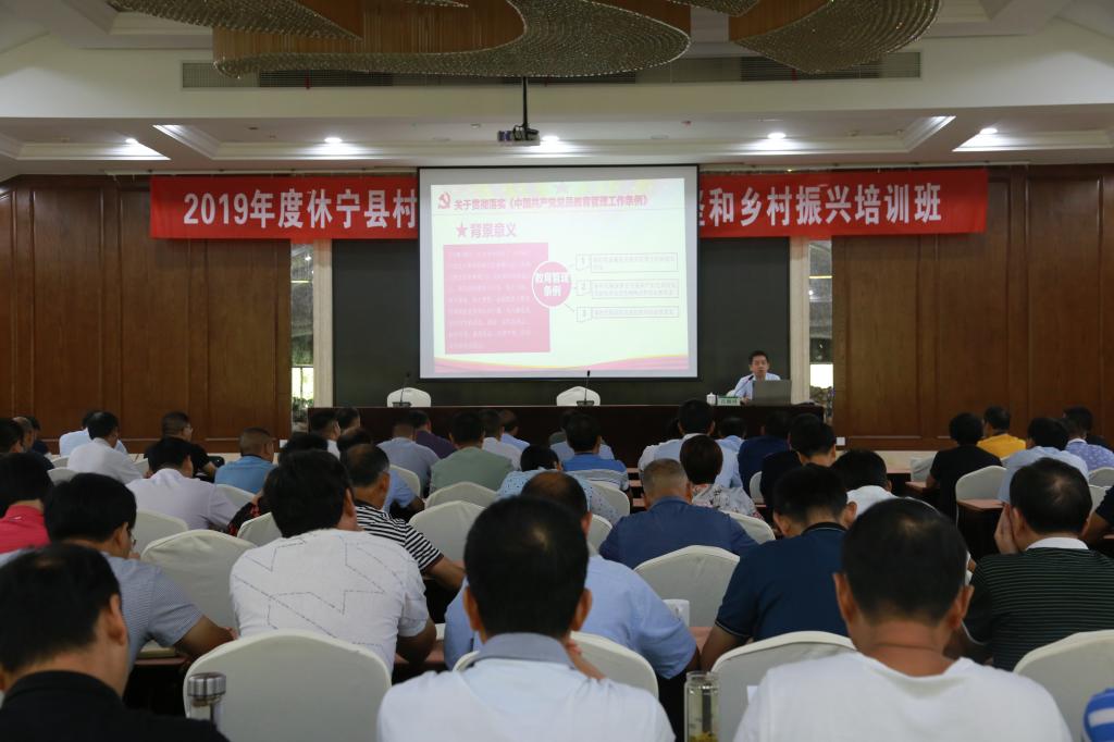 安徽省休宁县委组织部副部长、县党员活动指导中心主任吕顺祥作开班动员发言。他说,参加培训的村党组织书记要珍惜此次培训机会,严格遵守学习纪律,努力提升思想认识。他希望大家要理论结合实际,深入思考和总结在理论学习和现场考察中吸取的先进经验方法,贯彻落实到今后的脱贫攻坚工作中去。他还为全县村党组织书记作基层党建重点业务培训,重点解读了《中国共产党支部工作条例(试行)》《中国共产党党员教育管理工作条例》等内容。