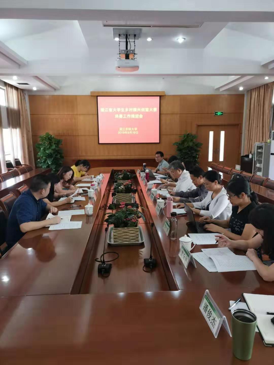 浙江省大学生乡村振兴创意大赛秘书处通报了赛事前期工作进展情况,汇报了决赛安排和决赛期间举行“全国大学生乡村振兴大会”的初步方案等。