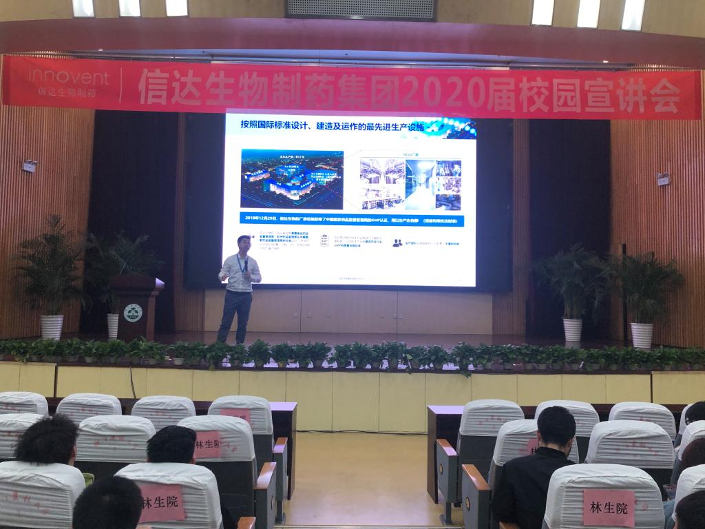 宣讲会上,信达生物人力资源经理何勇详细介绍了公司概况、发展战略、经营理念及用人机制,质量部和生产部负责人分别对本部门情况和招聘要求做了说明。同学们被信达生物的经营理念和发展前景所吸引,纷纷投递了个人简历,表示愿意为国家的医药产业自主创新贡献一份力量。