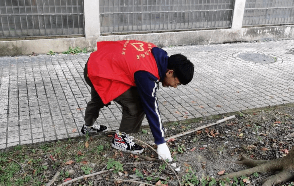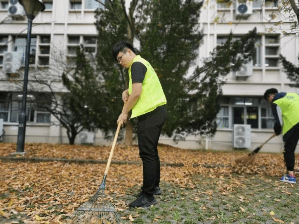 开展绿地美化,营造生态良好学习环境。每周四下午,在二号教学楼前后随处可见穿着绿马甲的理学院志愿者们,他们有拿着扫帚将人行道上的银杏落叶扫到两侧树下,在便于师生行走上课的同时,也助落叶化作养料促进植被的更好生长。也有持耙子或戴手套的志愿者在绿化带内,将杂草和落叶集于树下,整洁了教学楼周围的绿化环境。每周参与的志愿者们,在有限的时间内用极大的热情守护学校教学区的良好生态环境,给来往上课的农林师生带去的不仅是一抹舒适绿色,还是公益志愿服务的奉献红色,让在校师生感受身处生态校园内的惬意和无限活力。