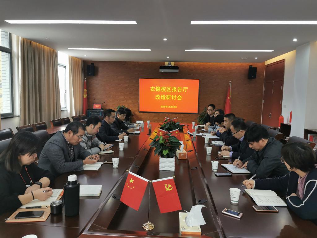 会议介绍了衣锦校区报告厅的现状,听取了相关部门和学院对报告厅改造的意见和建议,并就报告厅的使用功能、初步改造方案进行了热烈讨论,从使用、管理、安全等方面提出了意见和建议。