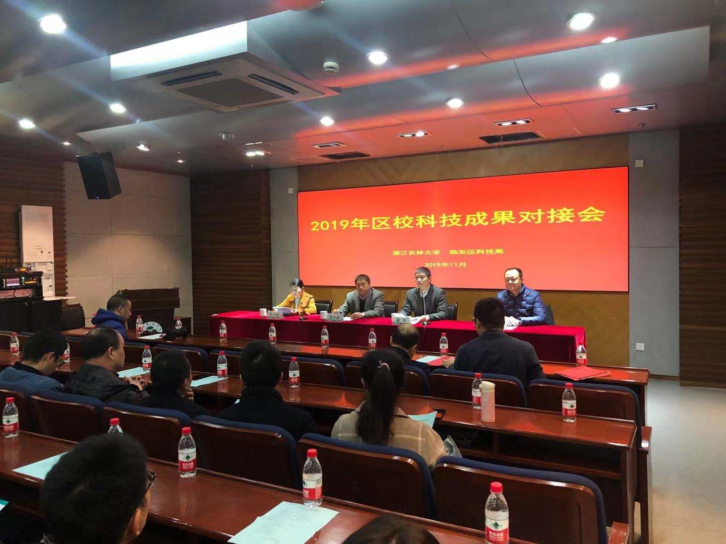 11月30日,学校与临安区科技局组织召开“2019年区校科技成果对接会”。会议由科技处负责人秦华主持。临安区科技局一行、临安区20多家企业代表,校科技处、合作处、农学院、林生院、工程学院、园林学院、信息学院和动科院等学院、部门专家参会。