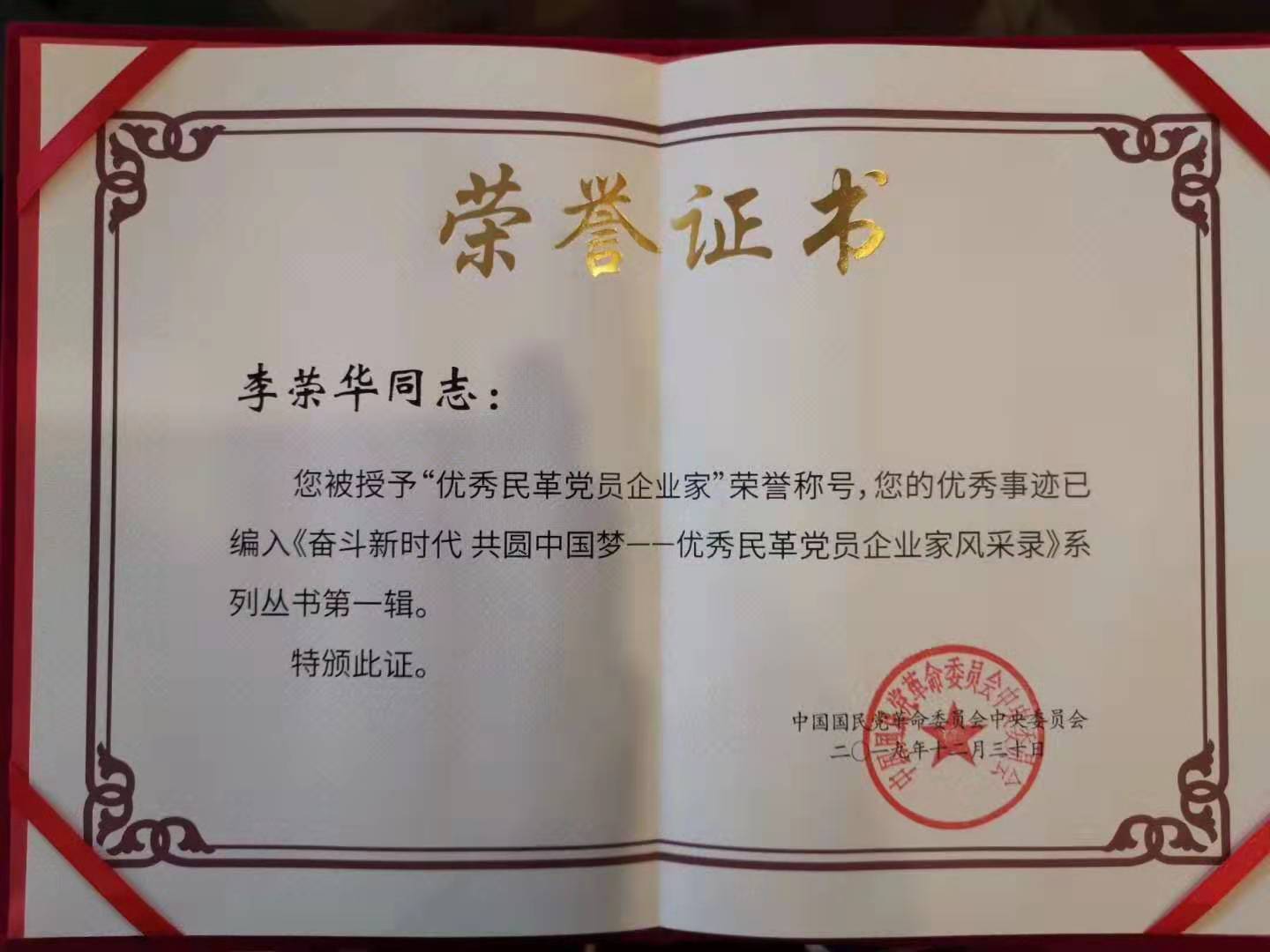 近日,中国国民党革命委员会中央委员会发布《关于表彰优秀民革党员企业家的决定》(革中〔2019〕129号),对在经济发展和社会活动中有较大影响,为民革履行参政党职能作出突出贡献的优秀民革党员企业家进行表彰。BEAT365风景园林1996级校友李荣华被授予“优秀民革企业家”荣誉称号,其优秀事迹已编入《奋斗新时代 共圆中国梦——优秀民革党员企业家风采录》系列从书第一辑。
