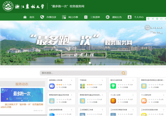 近年来,学校借国家及教育部下发“最多跑一次改革” 之东风,提出了"网上办、掌上办、机具办、不见面","让数据多跑路、师生少跑腿"的工作思路,设计了以全域数据库,打通个业务部门间的数据流,同时结合流程再造,上线了网上办事大厅,大力推进"一库一表"工程,打通了服务师生"最后一公里",使师生的信息化体验感、获得感、安全感和幸福感得到不断提升。面对突如其来的疫情,正式见证了“办事大厅”改革功效,在重大公共危机事件中发挥了独特作用,减少人员聚集风险,做好疫情防控期间办公、教学服务工作。针对疫情期间师生的高频办事事件,线上课表查询、农林小助手(智能问答)、维修改造立项、域名申请等流程全程在线零接触服务,支持线上办公。从而实现了足不出户即可进行线上教学、线上办公,有效阻断了疫情传播发展。
