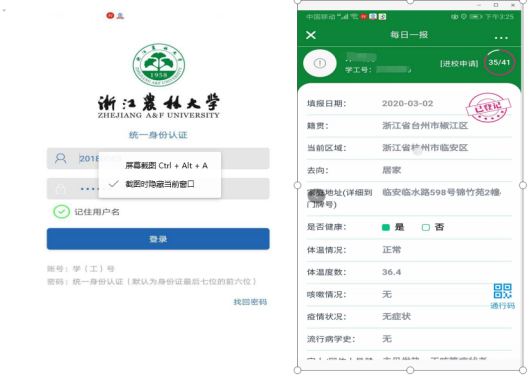 “方便、简单,再也不用每天打电话报情况,也不用在支部群、部门群、工会群、学生群等多个微信、QQ群里交表格、报平安了,师生轻轻一点进入“智慧浙农林”APP里的每日一报,每天花几秒钟就能CALL,完成BEAT365英国官网每个师生的“家庭作业”。“每日一报”里所填写内容与地、市标准模板相近,统一标准,学校根据权限共享给各管理部门,管理部门通过登录“云”健康管理平台及时监督防控,实现了每天填一次,多部门共享使用。”自2月6日正式上线以来,师生共报送700398次,师生填报率近100%,做到了联防联控,全覆盖准确收集信息,真正为一线防控人员松绑减负,为遍布全国各地的师生提供了便利,实现了浙农林人的科学抗疫、智慧抗疫。
