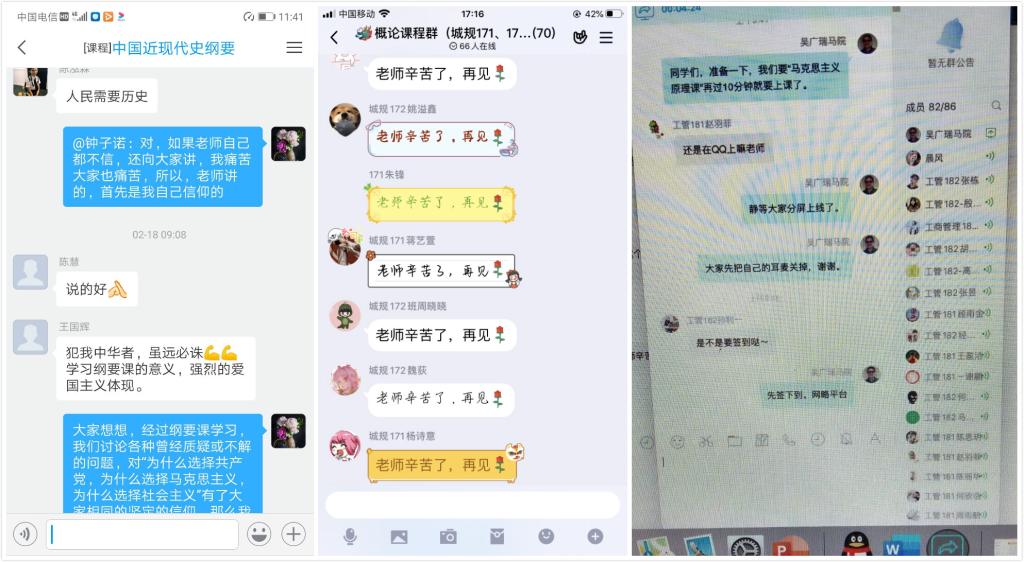 “QQ群、微信群或是文字、或是语音、或是视频直播,更接近我们对学生的日常课堂讲授,平台留下的痕迹就像我们的平时成绩记录本,记录了学生学习的过程,好做评定。”洪千里老师谈起自己的心得。