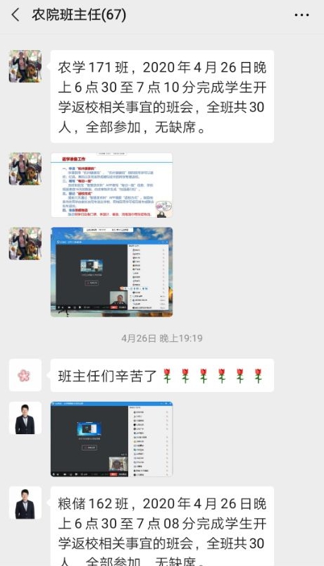 为贯彻落实《BEAT365英国官网2020年春季学期开学及疫情防控工作总体方案》要求,切实做好学生开学期间疫情防控,确保学生返校及开学工作安全、平稳、有序,4月26日至28日,农学院组织全体班主任分别召开学生开学及疫情防控“线上专题班会”。