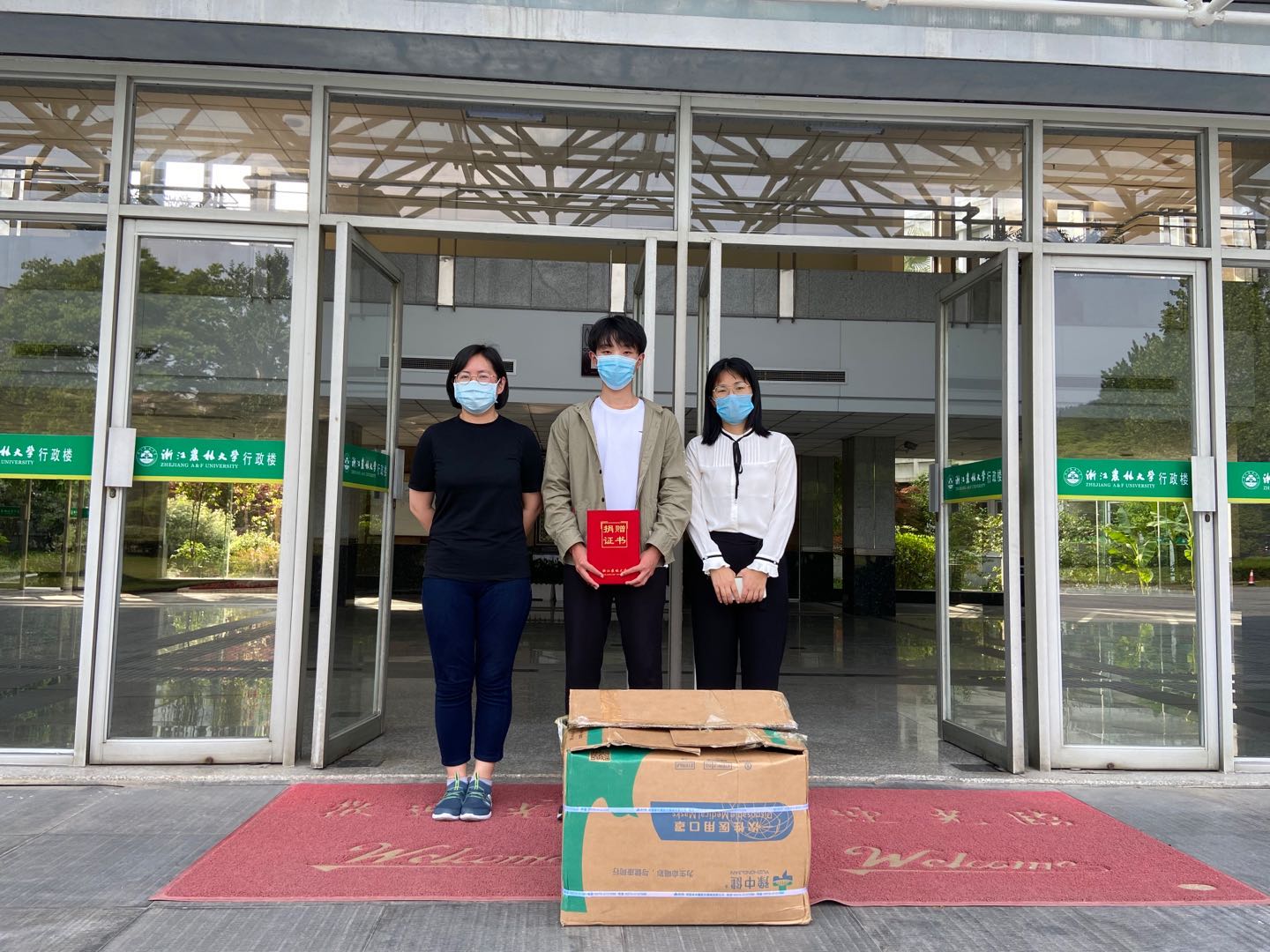 在学院老师的陪同下,赵子昂同学将带来的口罩捐赠给了学校教育基金会,教育基金会工作人员向他颁发了捐赠证书,并向他的爱心行动表示衷心的感谢。口罩是疫情防控期间的重要紧缺物资,对疫情防控起关键的作用。在接受捐赠后,教育基金会第一时间将所捐赠物资登记在册并转交防控办统一调配,学校会将捐赠物资用在最需要的地方。
