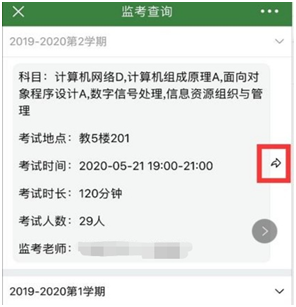 如教师用户登录,“智慧浙农林”APP首页直接显示“监考查询”应用,教师点击即可快速查询到自己所监考的场次、地点和时间等信息。同时,点击页面相关箭头跳转即可查询到参加考试全体学生的学号、座位号,及以往全部监考过的科目和相关具体信息,这让教师们在更短的时间里获得更多的有效信息,从细微之处感受到了学校的人文关怀。