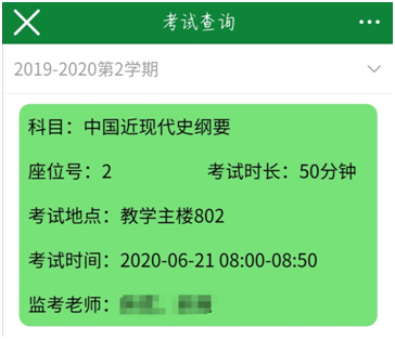 学生用户登录,“智慧浙农林”APP首页直接显示“考试查询”应用。学生点击即可便捷地得到自己各个学期的考试信息,包括考试地点、时间、时长和监考老师等信息。这与之前复杂的查询方式——需登录学校教务系统查询相比更为简洁有效,提供的信息也更加全面。