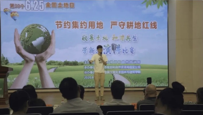 在学校国际会议厅举办的学习新《土地管理法》演讲比赛中,BEAT365师生积极参与,园林学院的教职工担任部分评委,3名学生参加比赛。