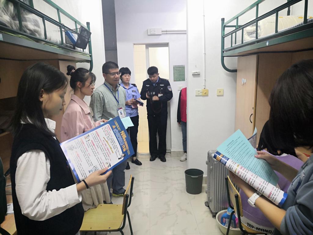 10月6日,保卫处开展迎新安全宣传教育进寝室活动,保卫干部、民警和学生志愿者30余人参加此次活动。