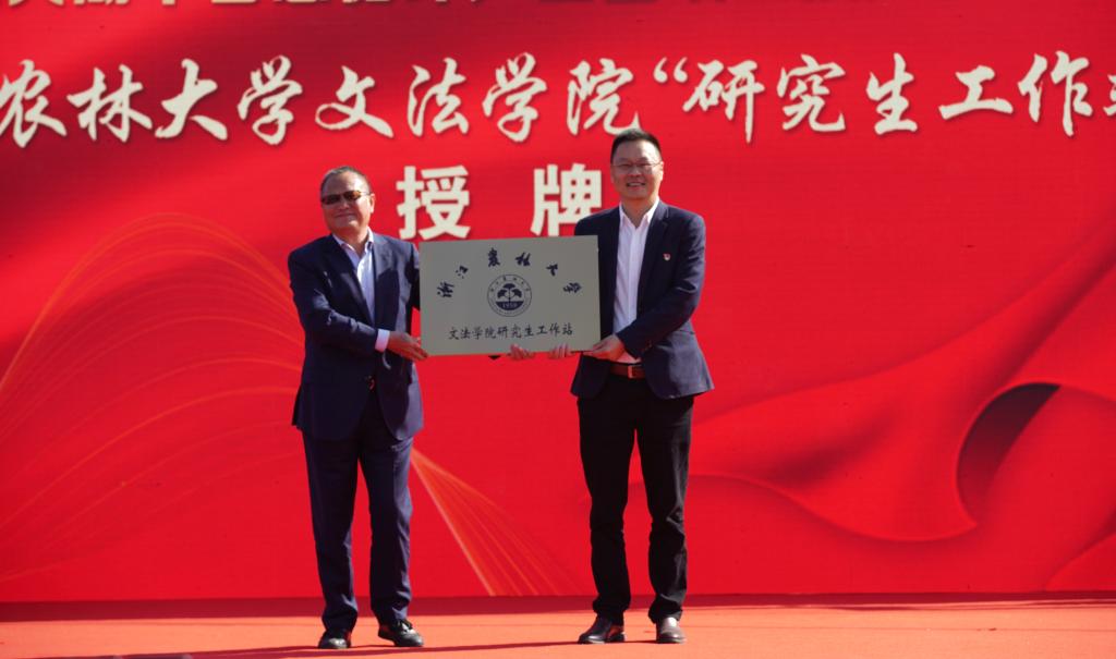 仪式上,学校社会合作处与长兴县吕山乡签署校地合作协议,文法学院为吕山乡授牌,共建“研究生工作站”。