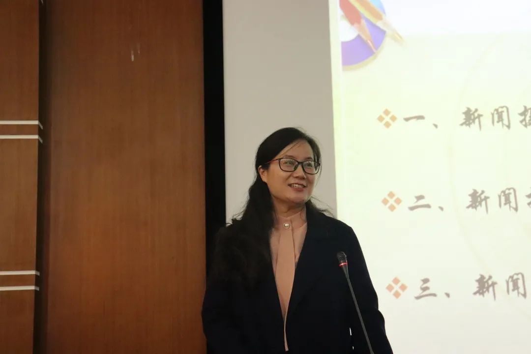 姜晓蓉围绕“校园新闻如何发掘”的主题,对《浙江日报》进行了简要的介绍,然后从主题报道、创新做法、前沿科技、鲜活有趣四个角度详细分析了如何写好新闻,并且指出做好新闻需要“有心、真心、用心”。姜晓蓉说,做好新闻需要找切口、多沟通、多发现,她通过分享自己的工作经历,指导师生如何撰写校园新闻。