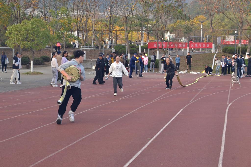 本次消防技能竞赛共设灭火接力和水带接力两个项目。随着哨声响起,参赛队员抛接水带、连接消火栓、奔向终点,接力灭火器、扑灭明火,团队配合,有条不紊,圆满完成了各项比赛任务。通过紧张的比拼和激烈的角逐,最终,农学院获一等奖,后勤集团和理学院获二等奖,马克思主义学院、信息工程学院和继续教育学院获三等奖。