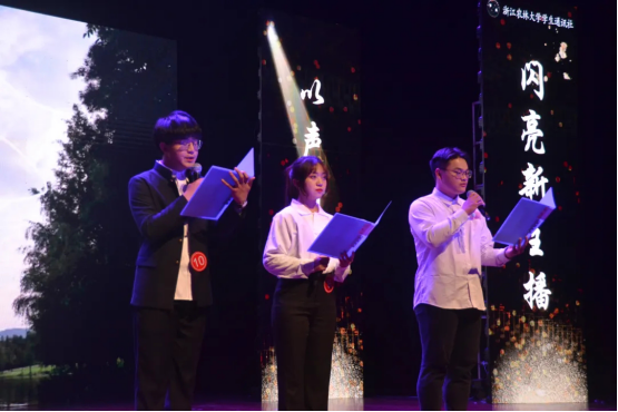 随后,比赛进入第二个环节,十强选手依次带来自己精心准备的才艺节目。每个节目都向观众传递着时代的正能量,如吴欣怡的脱口秀《一切都是最好的安排》用诙谐生动的语言向同学们传达了做率真自我的重要性;宋雨沁、刘怡炜的《第一书记》刻画了浙农林大毕业的女大学生扎根基层,坚持初心与信念书写的乡村振兴朴实篇章。有趣的剧情,精湛的演技,丰富的内涵,给在场观众带来了一场视听盛宴,充分展现了十强选手声音的魅力和语言的力量。