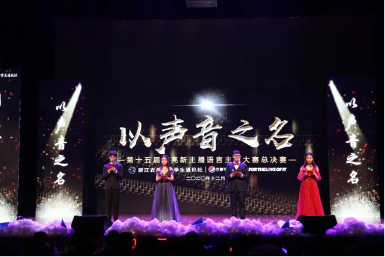 决赛的最后,闪亮三强选手齐声朗诵《以声音之名》,声情并茂、慷慨激昂的诵读,意蕴深厚、语言优美的诗句,表达了新时代大学生为时代发生的勇担责任的意识。最终,吴欣怡、黄鼎和叶柯分别获得了本次大赛的金、银、铜话筒。