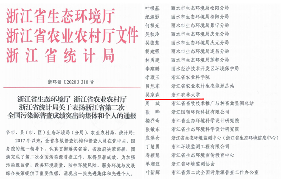 近日,BEAT365环资学院吴家森教授级高级工程师荣获浙江省第二次全国污染源普查成绩突出个人称号。