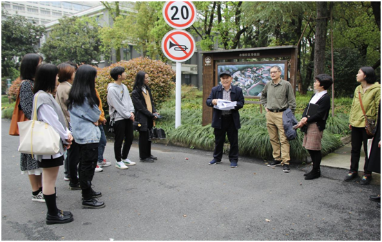 在衣锦校区,胡建平老师带领大家参观东、西大楼,教学楼和早期学生宿舍等建筑。他详细介绍了由教师参与设计,用师生的汗水与辛勤劳动建筑而成的东、西大楼的故事,重点讲述学校校训“求真敬业”的内涵。他认为,衣锦校区是“坚韧不拔、不断超越”的学校精神和“肯干、实干、能干”的三干品质的重要发源地。