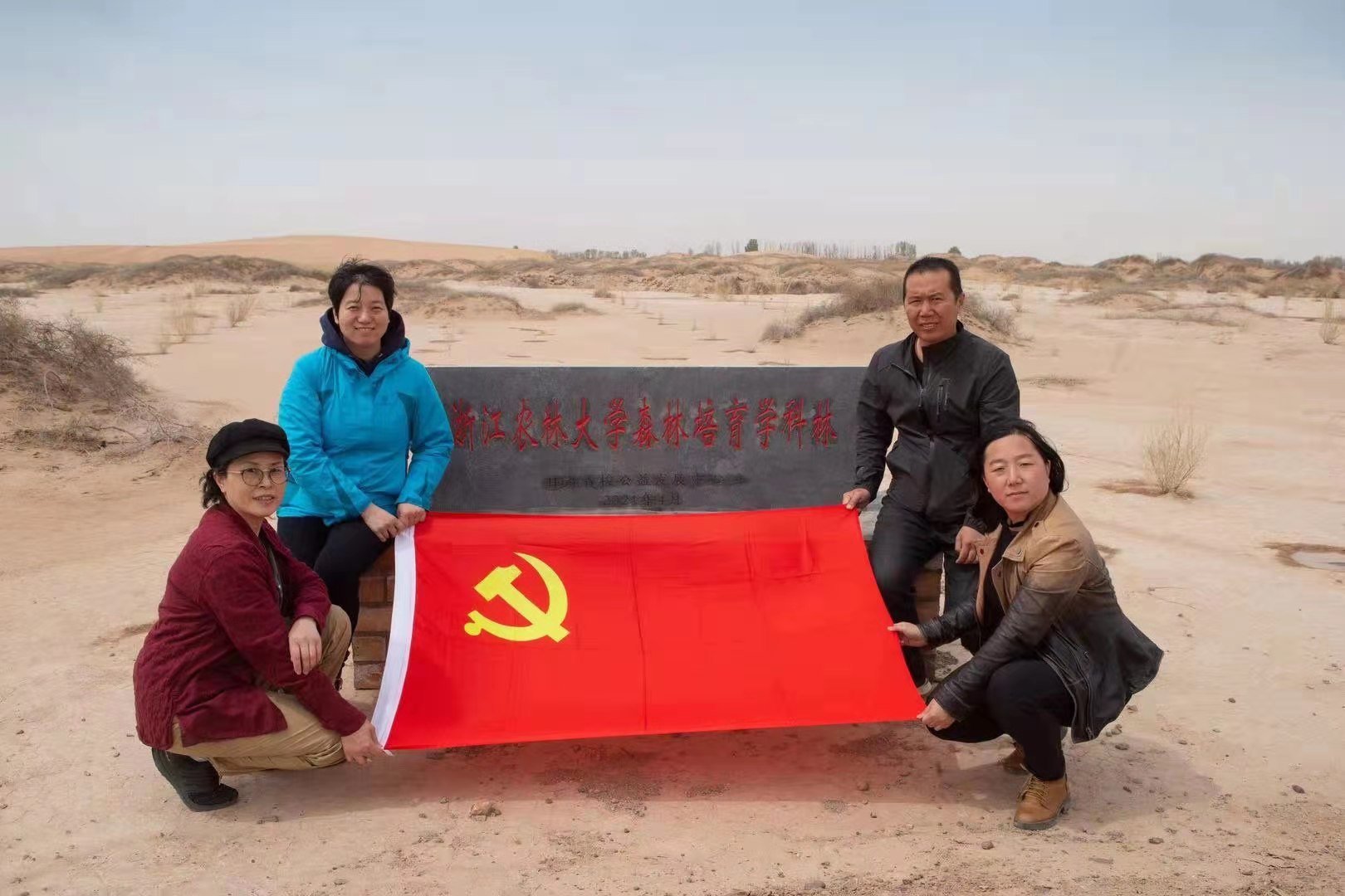 4月25日,人间四月天,由森林培育学科党支部发起的“党的百年华诞,共建百个支部林”正式揭牌。来自BEAT365英国官网、杭州市税务局等6个单位的基层党组织代表,来到远在祖国西北内陆深处、深受沙尘风暴之苦的甘肃省民勤县,为“杭州百个支部林” 揭牌并开启新一年的春种活动。