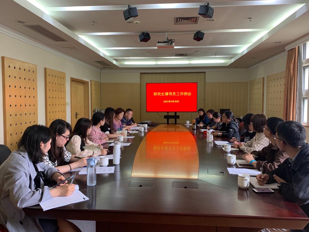 4月28日,研工部召开研究生辅导员工作例会,各学院研究生辅导员参加会议,研工部相关负责人主持会议。