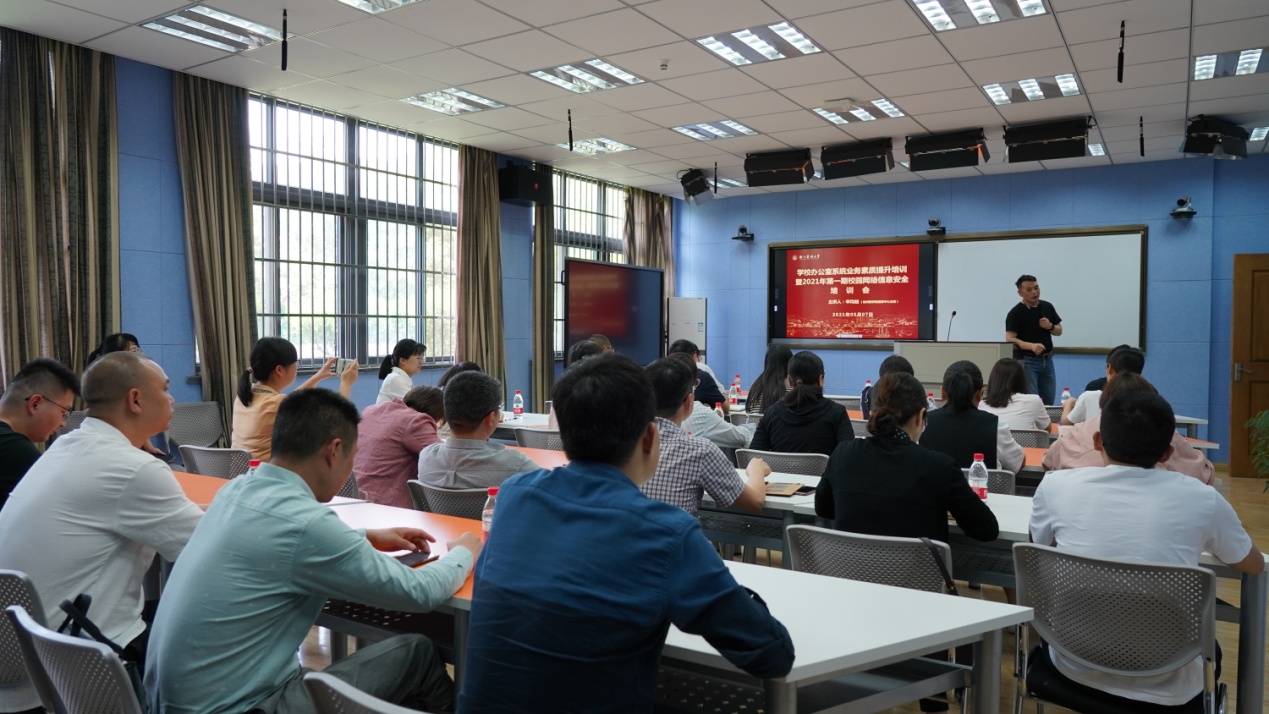 为贯彻落实省教育厅网络信息安全工作要求,进一步强化学校办公室系统及校园网络信息安全管理能力,切实提升学校办公室“精细化”工作水平,5月7日,校办和信息中心开展了办公室业务素质提升培训暨2021年第一期校园网络信息安全培训会。各学院(部)、部门的信息系统管理员及二级网站管理员参加培训会。