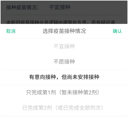 随着新冠疫苗接种的到来,抗疫“神器”又添新功能,接了新冠疫苗接种情况,做到了与时俱进。师生可根据自己的实际接种情况在“每日一报”上进行填报。数据共享到有关部门,方便后勤、保卫等部门根据每日意向接种人数合理安排时间、车辆等服务工作,做到“对症下药”为师生做好保障。对有意接种却未去接种的也及时做好提醒,及时有效地向师生传递信息。