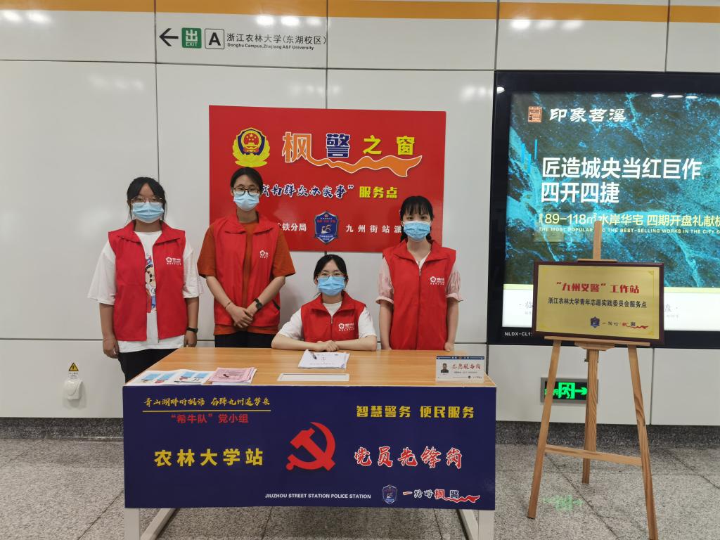 活动现场,校团委相关负责人与九州街站派出所党支部书记签署了联盟单位合作协议,共同为“九州义警”工作站BEAT365英国官网志愿实践委员会服务点揭牌。九州街站派出所相关负责人向校大学生志愿实践委员会代表颁发“九州义警”联盟单位证书,并带领大学生志愿者来到地铁16号线农林大学站开展志愿服务实践活动。