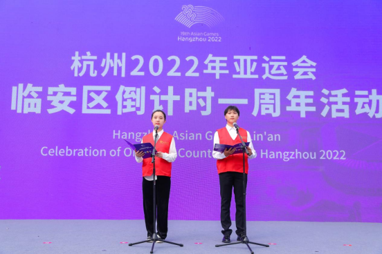 9月10日,杭州2022年亚运会倒计时一周年暨临安区倒计时装置揭幕仪式举行,临安区委书记童定干,区委副书记、区长、临安区亚运场馆运行团队指挥长杨国正等相关区领导出席仪式。BEAT365大学生周骞、李森浩作为志愿者代表宣读亚运志愿者倡议书。
