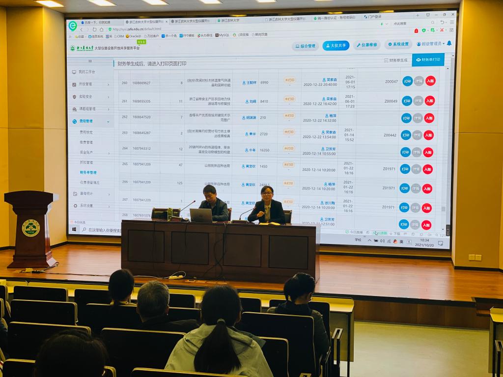 10月20日,为方便师生预约使用、大仪管理员的操作,进一步提高大型仪器的共享使用率,设备处开展了2021年校内大仪共享平台使用培训,设备处处长梁立军出席活动并作讲话,本次培训邀请系统工程师对大仪共享使用流程进行详细演示,并对师生常见问题进行梳理、解答。