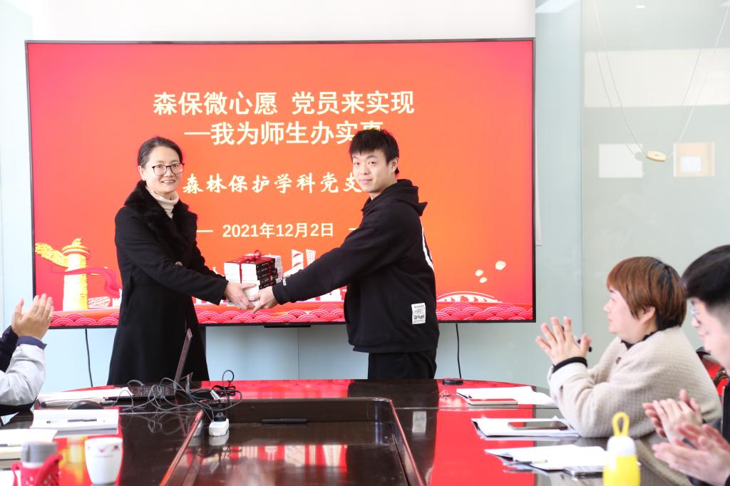 为把党史教育活动同总结经验、观照现实、推动工作结合起来,同解决实际问题结合起来,林生院森保学科党支部联合林学二、林业二研究生党支部,共同举办“森保微心愿 党员来实现”我为师生办实事活动。