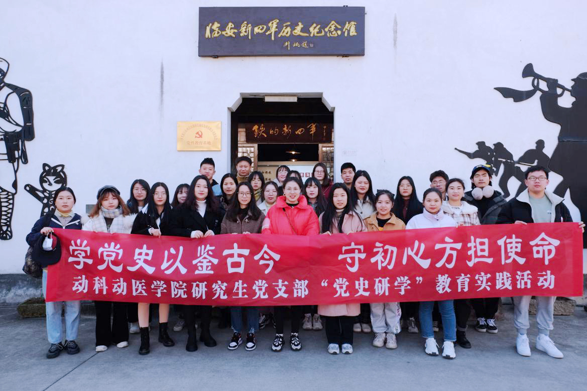为深入贯彻落实党的十九届六中全会、浙江省委十四届十次全会精神,持续推动党史学习教育走深走实,12月4日,动科动医学院研究生党支部赴临安区新四军历史纪念馆开展主题为“学党史以鉴古今,守初心方担使命”的教育实践活动。