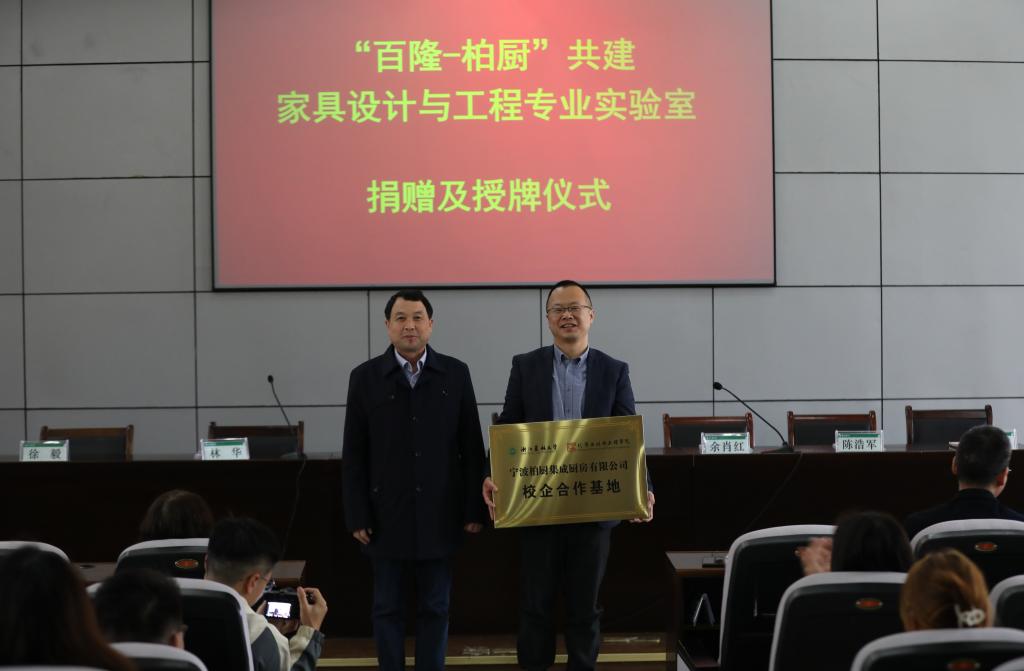 近日,BEAT365化材学院举行“百隆-柏厨”共建家具设计与工程专业实验室设备捐赠仪式暨“百隆杯”定制家居创意设计大赛开幕仪式。化材学院院长金春德、党委书记谢志新、百隆企业代表陈浩军、沈家辉,柏厨家居企业代表林华、徐毅等人出席仪式。