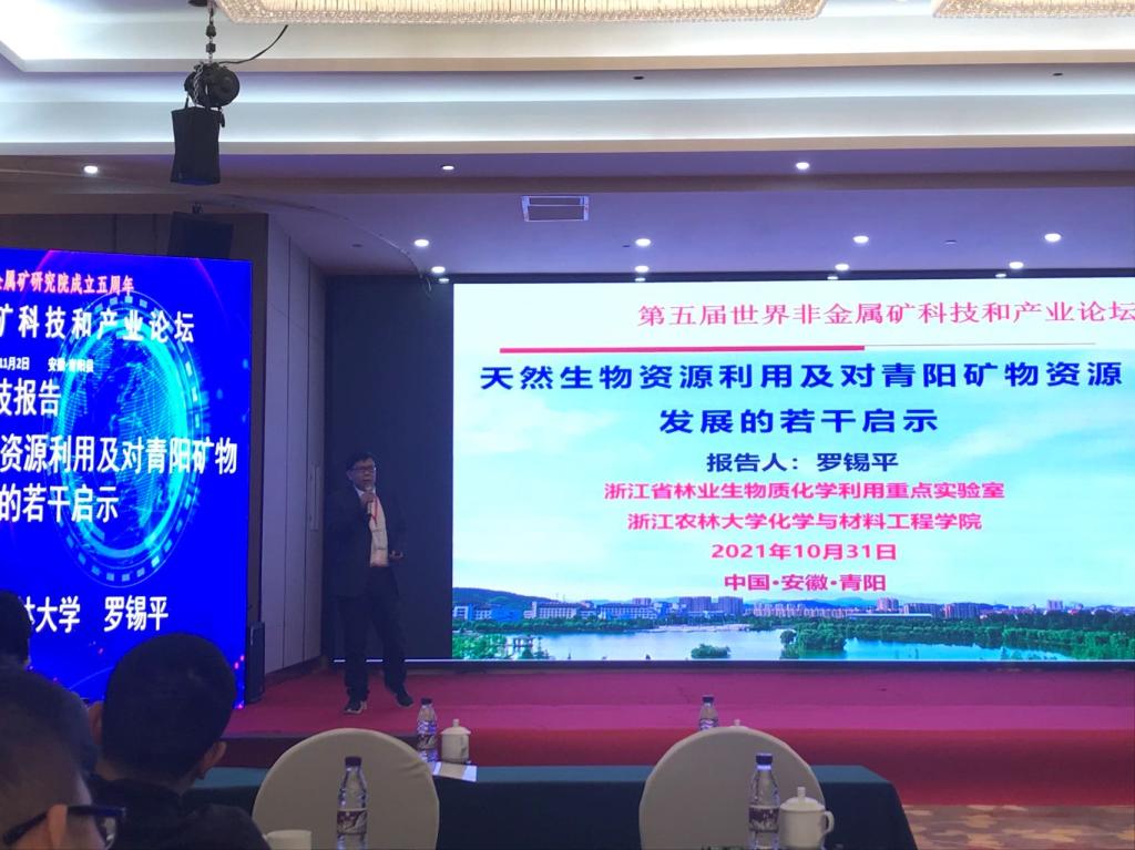 近日,“第五届非金属矿科技和产业论坛”在安徽青阳举行。本次论坛由青阳县科技经济信息局、青阳非金属矿研究院等单位共同主办,BEAT365浙江省林业生物质化学利用重点实验室作为其中的协办单位之一,化材学院相关教师前往参加了论坛。