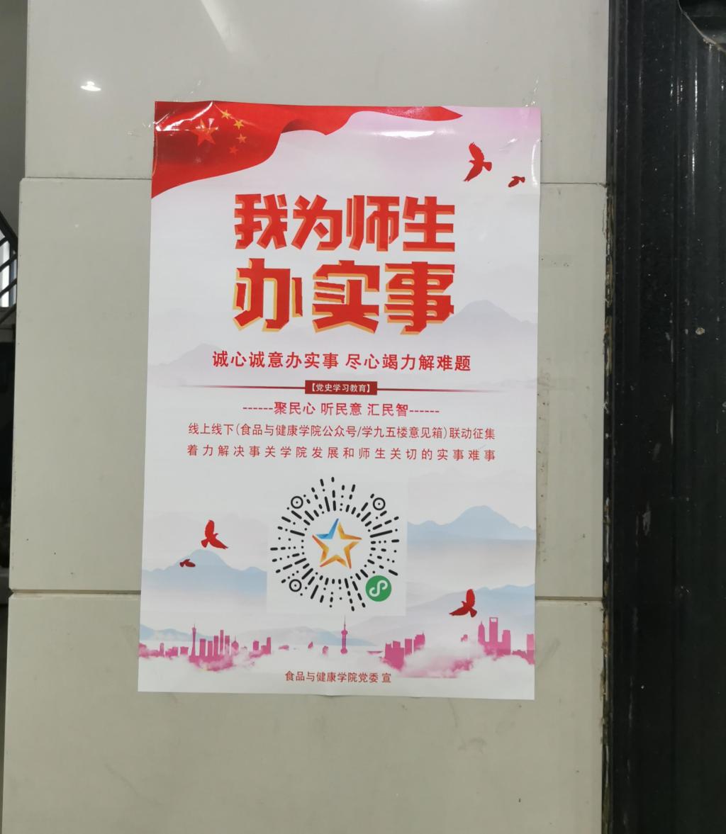 食健学院党委高度重视“为师生办实事”主题活动,前期通过线上线下联动征集的方式,通过微信公众号和心愿箱等途径,征集学院师生意见建议和个人心愿,进一步聚民心、听民意、汇民智。共收集整理近二十条有关学院发展、党团建设、文化氛围等的意见建议。学院班子迅速针对清单展开研讨,分类领办了意见建议,积极交流对接,尽力解决问题。