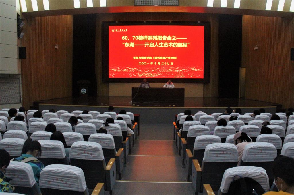 为帮助大学生进行人生规划,明确人生目标,10月27日,食健学院在图书馆举行了第二场“60、70榜样系列报告会”,邀请95级校友、书法家叶剑鸿作专题报告,学院党委书记汪和生、学院学生工作负责人、全体大一新生参加报告会。