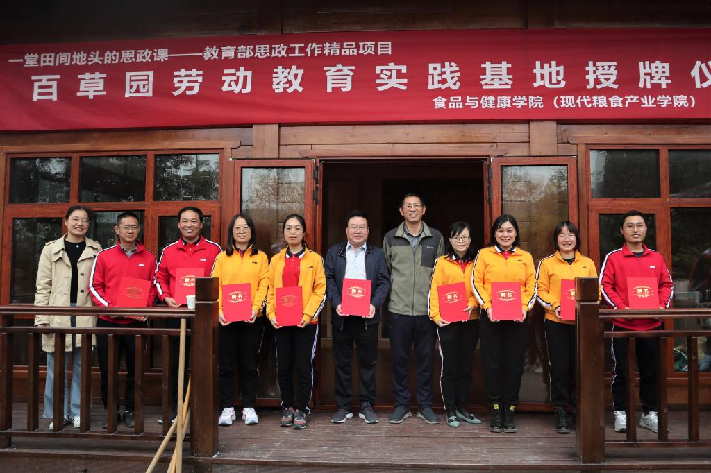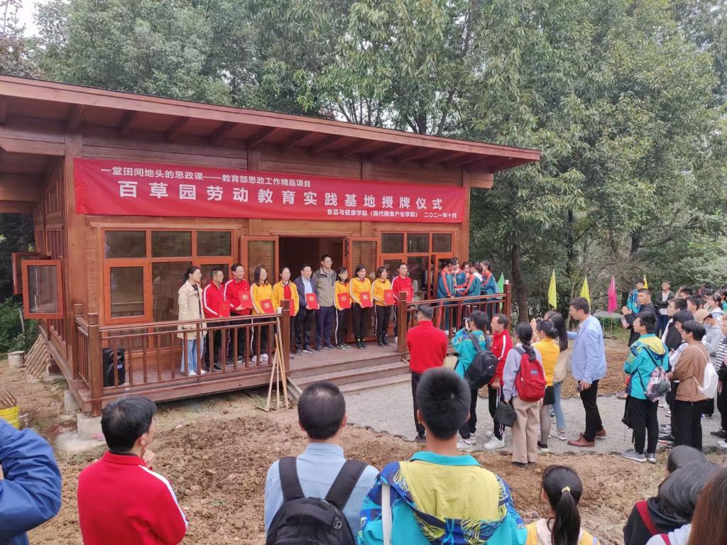 10月28日,食健学院(现代粮食产业学院)举行以“躬耕百草园,品尝洛神花,体验劳动乐,培育生态人”为主题的百草园劳动教育实践基地成立仪式。学院党委书记汪和生,相关专业教师参加。