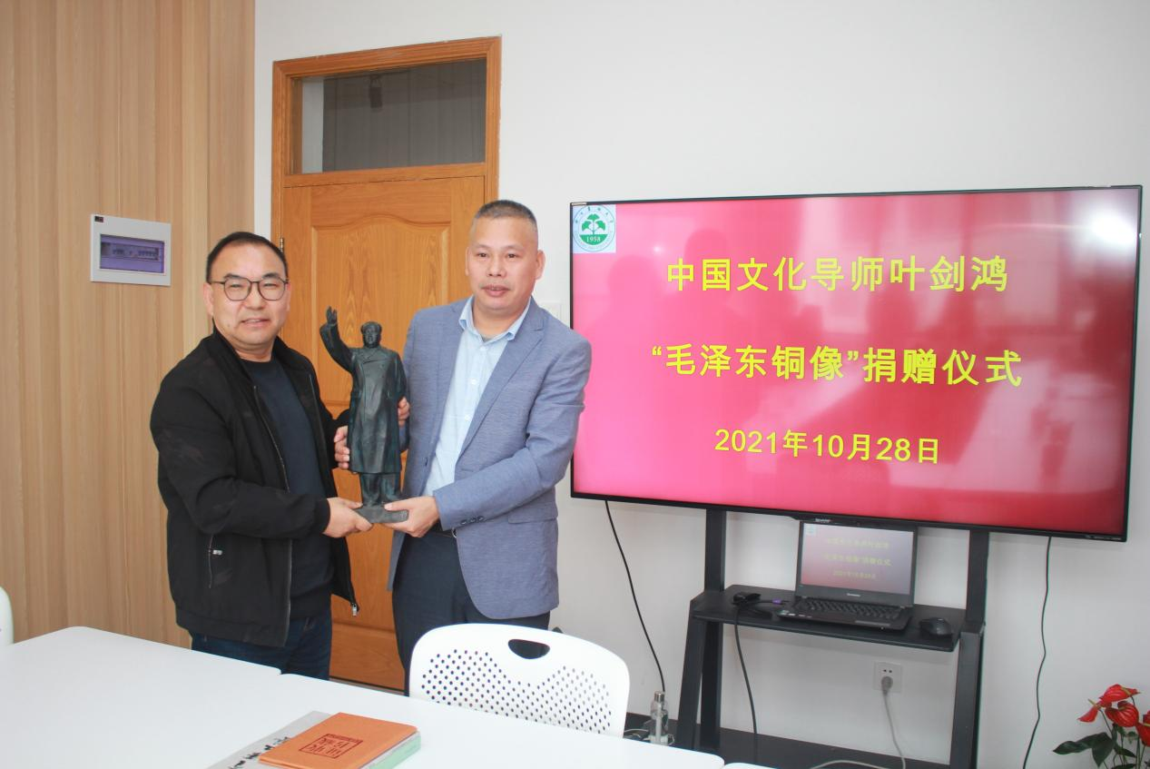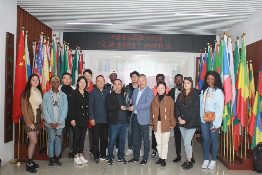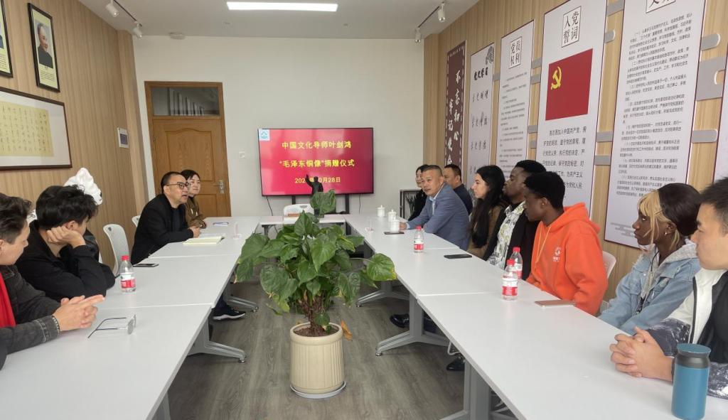 叶剑鸿表达了自己心系母校、关注学校留学生教育的情怀。他表示,作为留学生文化导师,自己始终有一份沉甸甸的使命感和责任感。此次捐赠的毛泽东铜像,是中国美术学院教授叶庆文先生在1969年创作的毛主席雕像小样原大翻铜。他希望广大留学生能够借此更多地了解毛泽东和中国共产党的故事,传播中国精神。