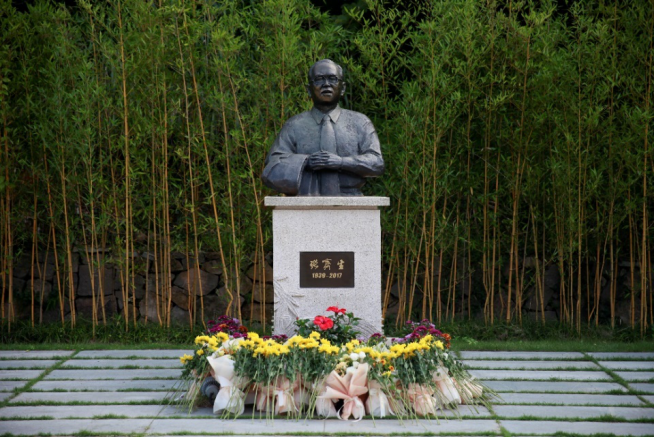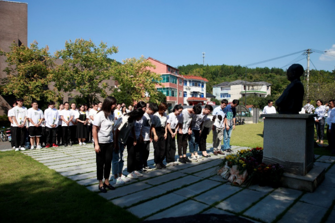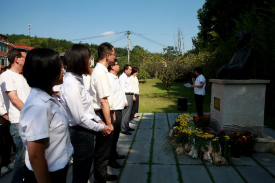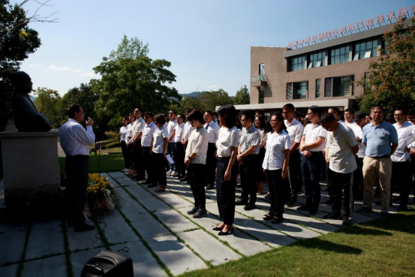 下午2时整,与会人员手持菊花肃立在张院士雕像前静默,随后逐一向张院士铜像献花并鞠躬致敬。