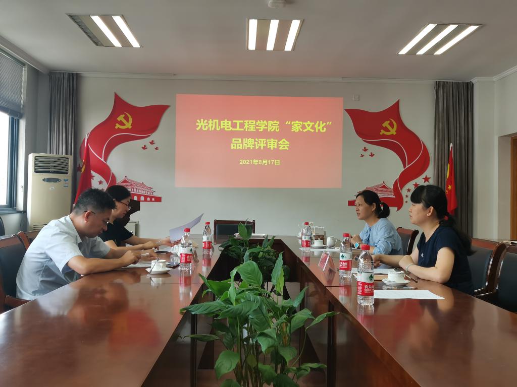 8月17日,光机电工程学院在学院召开“家文化”品牌评审会。校宣传部、校工会等部门相关负责人担任专家评委,学院党委书记洪昀主持会议,学院相关负责人参加会议。