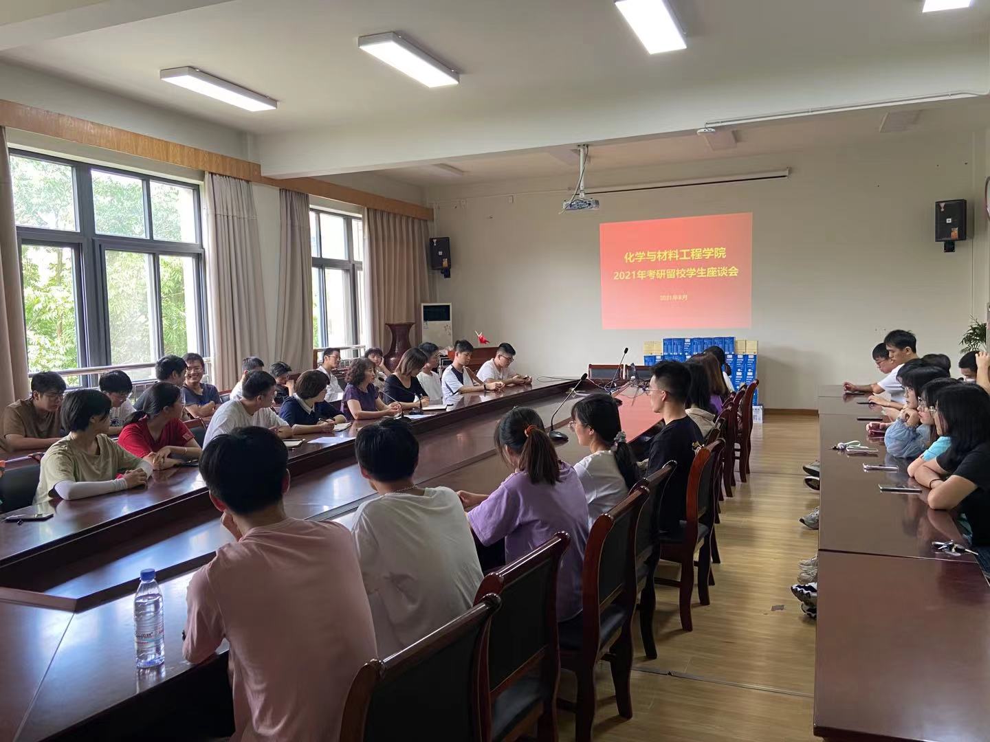 8月9日,化学与材料工程学院举行2021年考研留校学生座谈会,学院党委书记谢志新、学院相关负责人,辅导员和60余名留校备考研究生学生参加。