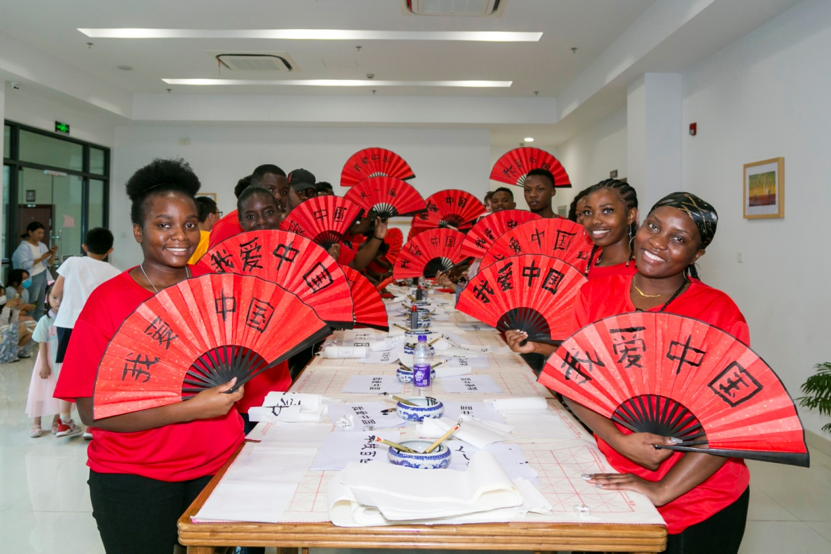 开幕式结束后,留学生分成2个小组,分批轮流与文化导师零距离交流互动,“感知”书法和扎染等中国传统文化。来自赞比亚的硕士生王子说:“很高兴有这样的机会参加文化体验活动,受益匪浅,加深了对中国和浙江的热爱。”