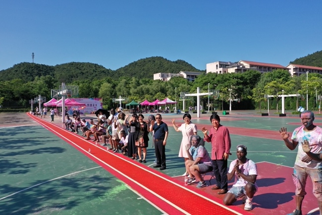当书卷缓缓展开时,在场的国际生不禁发出连连赞叹,来自喀麦隆的雍珂说:“一百米长的书法作品着实刷新了我的认知,我赶紧和长卷合了影,以后看到这张照片,就能想到汪老师创作期间的艰辛与毅力,激励着我不断探索、继续前进。”