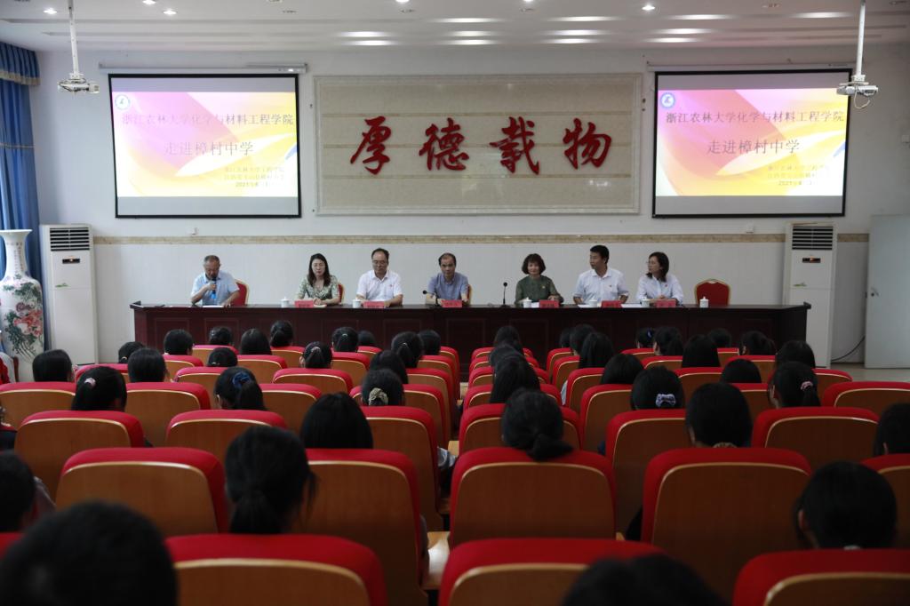 在玉山县樟村中学礼堂内,樟村中学徐校长深情讲述了林业工程学科党支部与樟村中学的“樟中情愫”。谢志新表达了对樟村中学学子的美好祝福及期望。孙庆丰以习近平的七年知青岁月、陈望道翻译《共产党宣言》时“蘸着墨汁吃粽子,还说味道很甜”的故事为例,告诫同学们珍惜时间,多读书、读好书、好读书。谢书记和孙庆丰一同为樟村中学第三届“林工励志奖学金”获得者颁奖。学院相关负责人为同学们作《择校选专业:走好青春求学之路》升学辅导报告。
