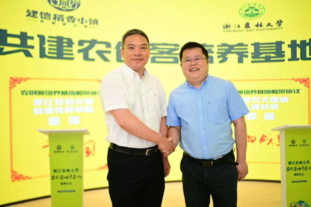 仪式上,哀建国致辞,他指出党建联盟暨“农创客”培养基地揭牌是双方顺应新时代、新要求,对乡村振兴人才培养的一次全新探索,他期望双方以此为契机,主动推进各项合作事项落地生根、结出硕果,为乡村振兴增添亮丽的农创风景。随后,哀建国与大同镇镇长杨成军签署了《共建BEAT365英国官网“农创客”培养基地框架协议》,许树洪与建德市委常委、统战部部长张早林共同为BEAT365英国官网农创客培养基地揭牌。