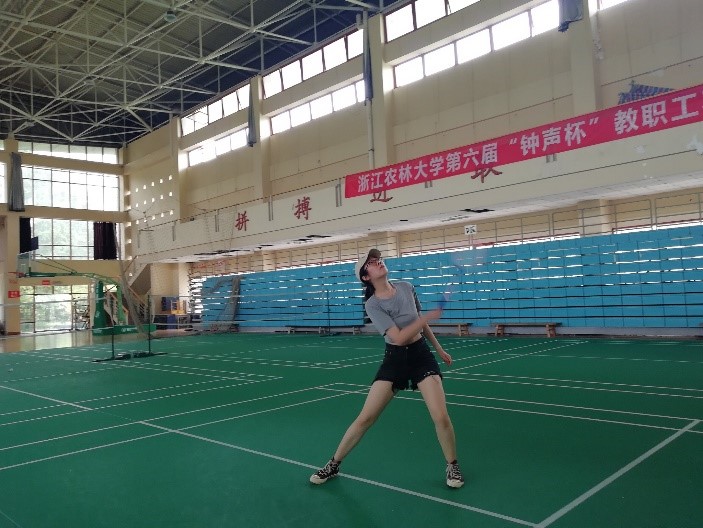 杨烨最喜欢的运动是羽毛球,只要有时间、有同伴,她就会拿起球拍,挥洒汗水,在锻炼身体的同时也能很好地释放心情和压力。她更享受的是在打羽毛球时放空的状态,可以什么都不想,让精神得到充分的放松。她也鼓励大家找到自己在业余生活中的爱好,放松精神,治愈心灵,填充动力,在未来便能以更加积极的精神面貌投入到学习和工作中去。