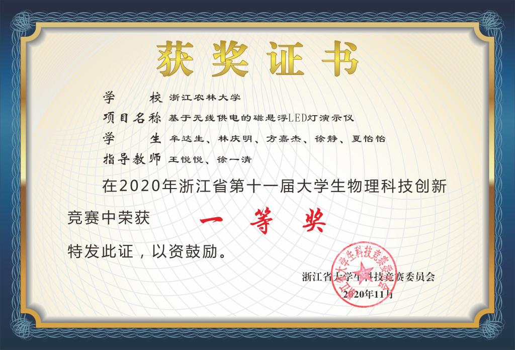 重实践、指导物理学科竞赛喜获佳绩。支部带动学科,利用物理省级实验教学示范中心平台,突出理论指导实践,培养学生利用所学知识进行实践创新的能力。支部教师指导学生在浙江省第十一届大学生物理科技创新竞赛中获得了5个一等奖、9个二等奖、7个三等奖的好成绩。在一等奖的作品中,有自制的基于无线供电的磁悬浮LED灯演示仪,独创性地将磁悬浮技术和无线供电技术引入到了LED演示实验装置的研制中,改善设备运行条件,能广泛用于课堂演示、课程设计等场合,具有很好的推广应用价值。还有智能橱柜控制系统,可实现远程控制功能、联动防控功能、柜中物体保障功能、火候控制功能、过期提醒功能以及防灾报警功能,可在后期进行科技孵化,为小康社会智能产品提供技术支持。
