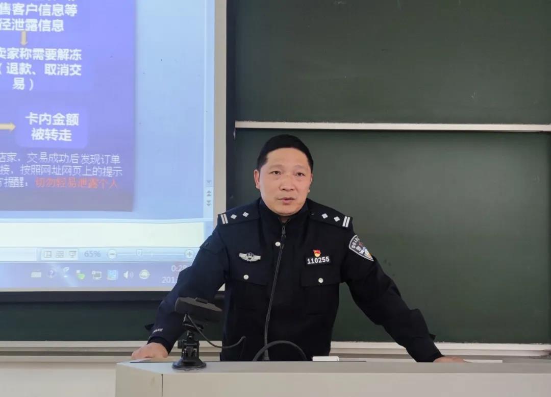 为认真贯彻落实习近平总书记重要指示和全国打击治理电信网络新型违法犯罪工作电视电话会议精神学校关于加强师生防诈工作的通知,有效提高师生员工对电信诈骗犯罪的鉴别能力和自我防范意识,积极探索有效的防范手段和工作机制,文法学院近期邀请临安锦城派出所张鹏警官来校开展防范通讯网络诈骗宣传教育活动。学院各班安全宣传员和师生代表参加了活动。