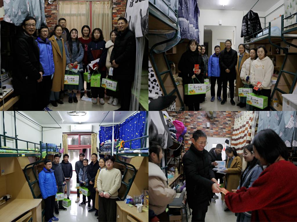1月27日,农学院党委书记汪和生,学院相关负责人,党委相关代表,与辅导员一起深入学生寝室慰问寒假留校学生,为他们送去温暖关怀和新春祝福。