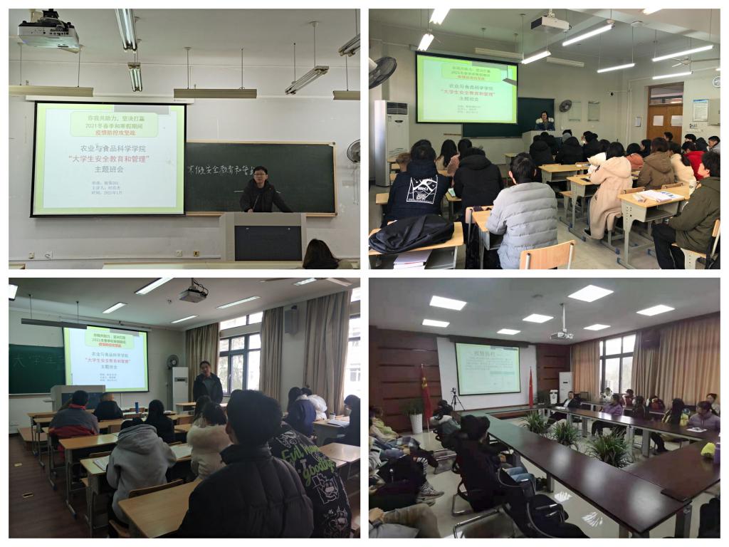 寒假临近,为进一步加强对农院学生的安全教育和管理,根据上级有关文件精神和学校《关于进一步加强冬春季和寒假期间疫情防控工作的通知》要求,1月16日至18日,农学院组织全院66个班级开展寒假“学生安全教育和管理”主题班会。